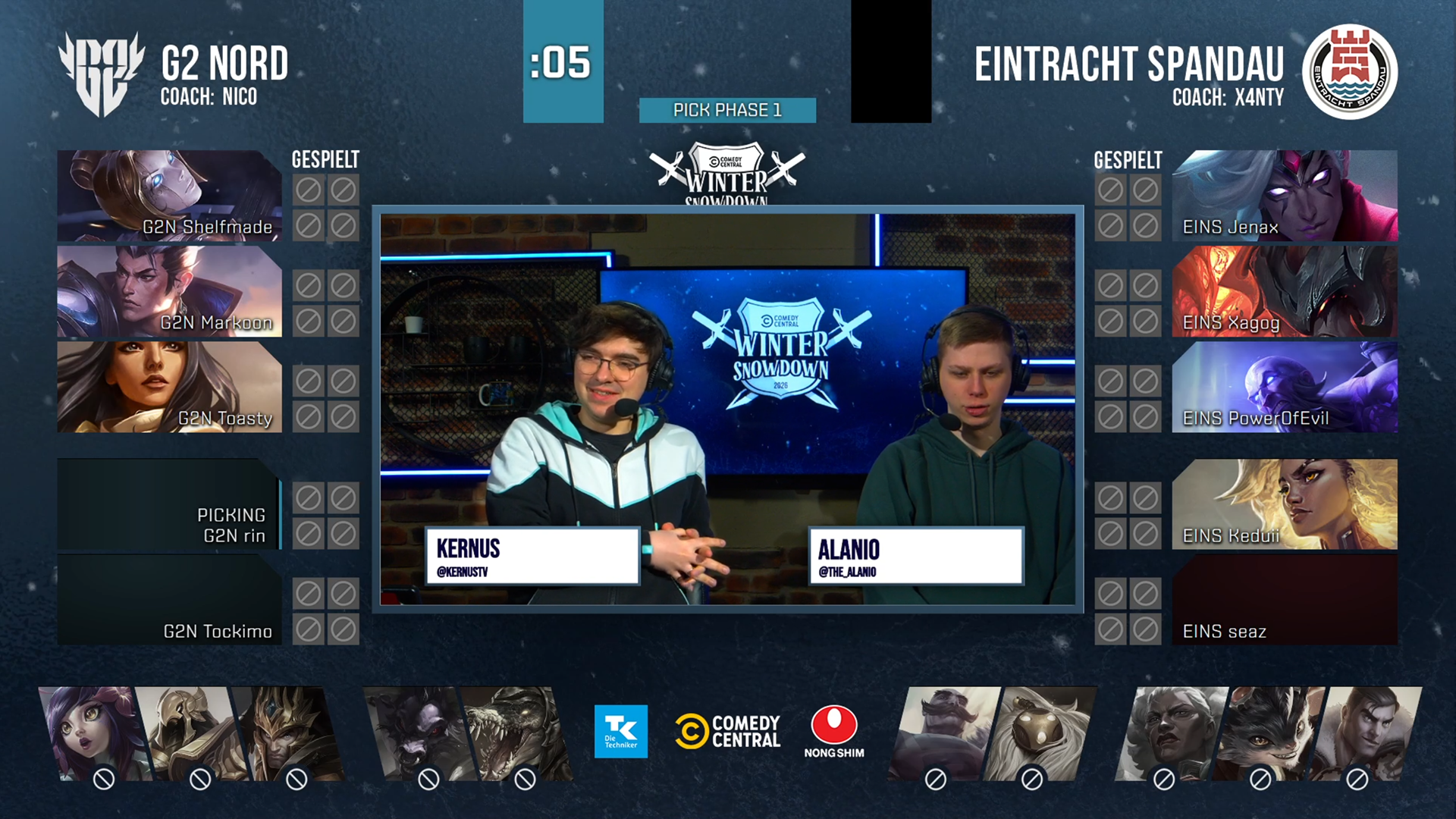 Ich übernahm das umfassende Branding für den "Comedy Central - Winter Snowdown 2026" der Prime League, die offizielle deutsche League of Legends Liga. Ich war verantwortlich für das gesamte Design des Turniers und dessen Assets, von Logo bis hin zur generellen Vibe.